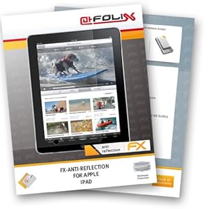 FX-Anti-Reflection Displayschutzfolie passgenau fürApple iPad / i-Pad (WI-FI, 3G)Blendfrei und hartbeschichtet!Die FX-ANTI-REFLECTION Displayschutzfolie ist eine optische Hightech Schutzfolie für hochauflösende Displays.Diese zurzeit wohl beste Antireflex-Displayschutzfolie am Markt, besitzt eine matte Antireflexionsschicht zur deutlichen Reduzierung von störenden Spiegelungen auf dem Display. Die entspiegelnde Displayschutzfolie schmiegt sich optimal an ihr Display an, ohne die Nutzbarkeit zu beeinträchtigen. Sie ist äußerst kratzfest, sehr einfach anzubringen und jederzeit rückstandsfrei entfernbar.